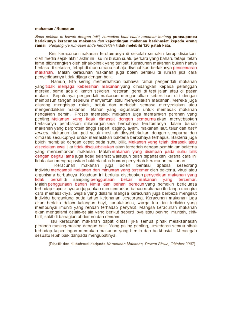 Rumusan Kes Keracunan Makanan Di Sekolah